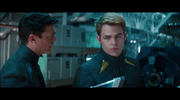 Dopo aver ucciso Pike, il criminale fugge su Kronos, territorio dei Klingon, una razza aliena ostile alla Flotta Stellare. A questo punto l'ammiraglio Alexander Marcus ripristina Kirk e Spock all'Enterprise con l'ordine di uccidere il terrorista usando dei nuovi siluri fotonici a lungo raggio. I due, nuovamente uniti per combattere il nemico comune, si dirigono alla caccia dell’assassino del loro ex comandate. Giunti su Kronos, vengono aggrediti dalle pattuglie Klingon che si apprestano ad uccidere Uhura (Zoe Saldana).